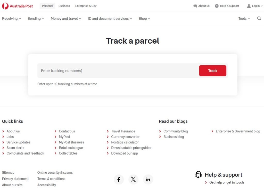 Click here to access Australia Post tracking.